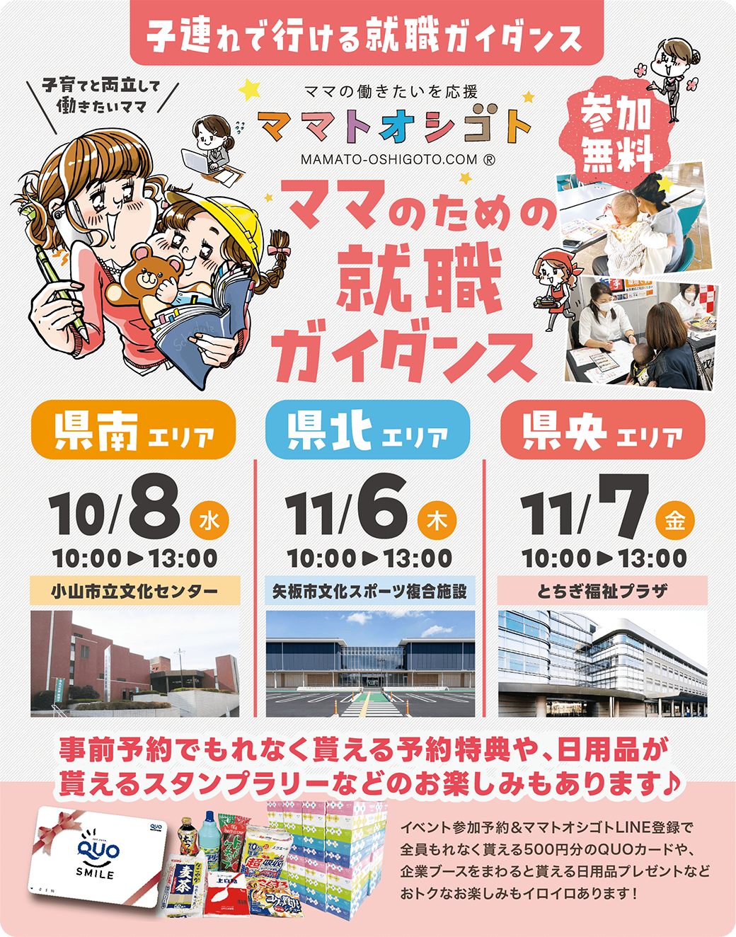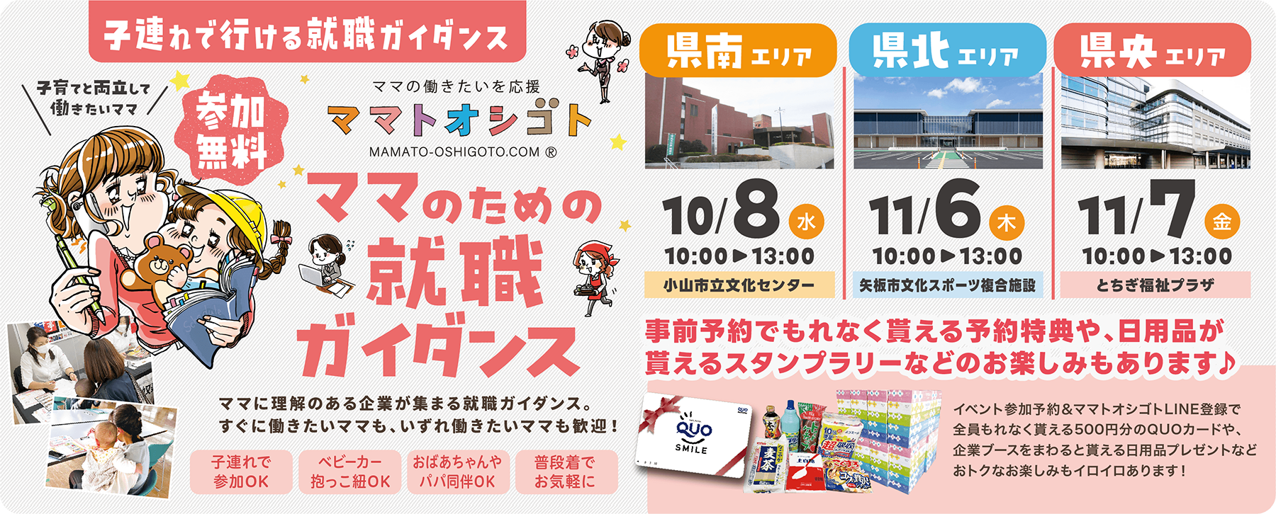 【ママのための就職ガイダンス】2025年11月開催決定★県央・県北でご予約スタートいたしました!